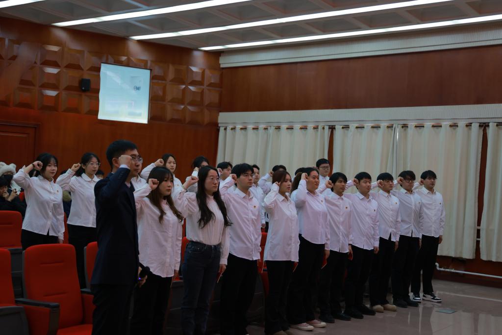 仪式在激昂的《国际歌》中拉开帷幕。全体人员起立,奏唱国际歌,歌声激昂,让每一位新党员心中涌起对革命先辈的敬意和对党的事业的无限忠诚。副院长徐鹏宣读了新党员名单。在领誓人毛长明的带领下,新党员们举起右拳,面向党旗,庄严宣誓。