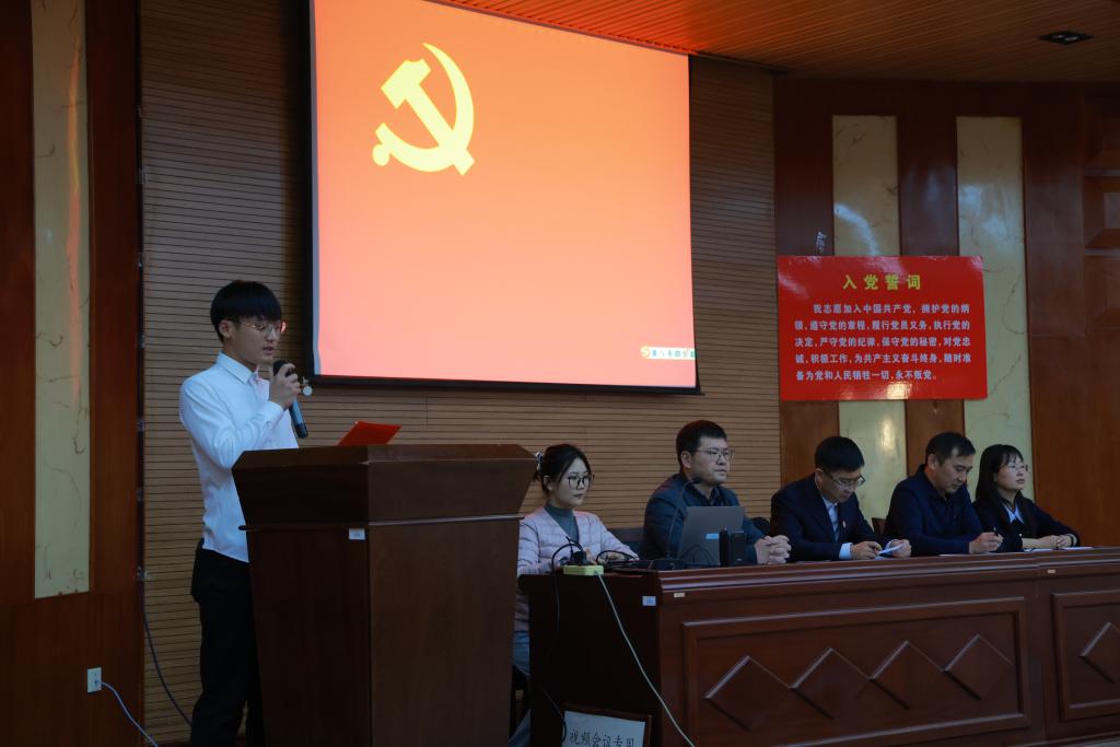 宣誓结束后,新党员蒋永辉代表全体预备党员发言。他表示:将以优秀党员为榜样,不断提高自身的政治素养和业务能力,在学习中刻苦钻研,在工作中勇于担当,在生活中严于律己,用实际行动践行我们的誓言,为党和人民的事业奉献自己的青春和力量!