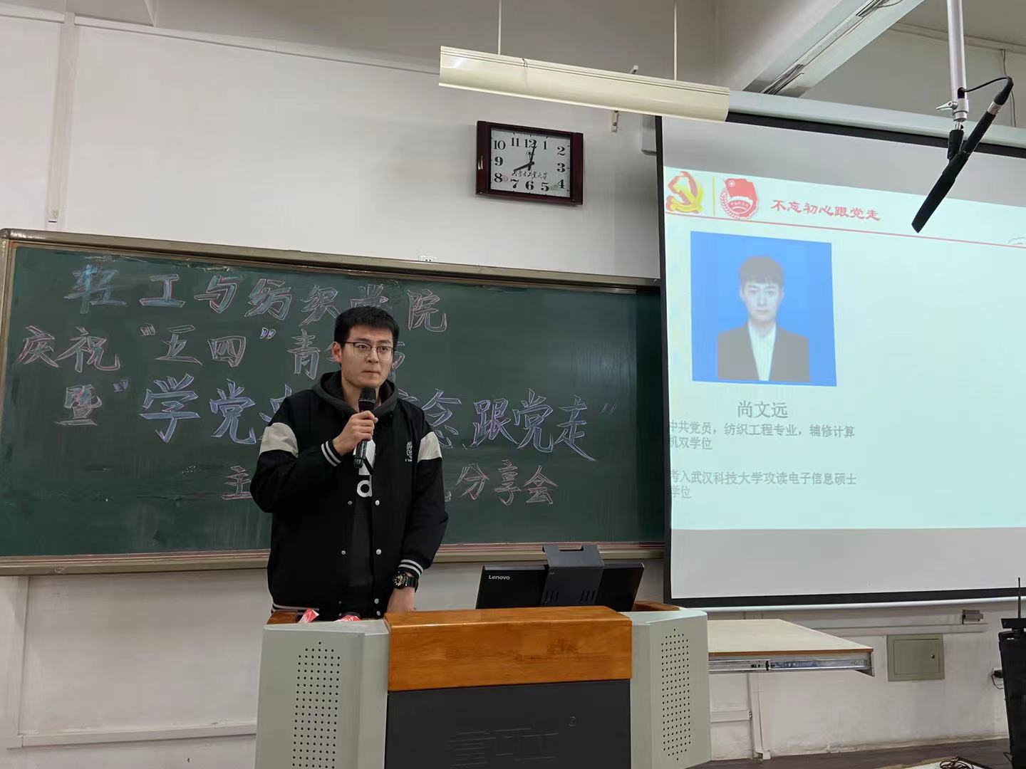 为庆祝建党100周年,深入开展“学党史、强信念、跟党走”学习教育,唱响爱国爱党爱社会主义的时代主旋律,广泛动员团员参与“我是共产党员,我帮你”“我是共青团员,我帮你”新时代文明实践志愿服务活动,教育引导团员看齐榜样、学习先进、跟党奋斗,4月28日,必赢nn699net团总支在教A辅101举办了庆祝“五四”青年节暨“学党史、强信念、跟党走”主题学习交流分享会。