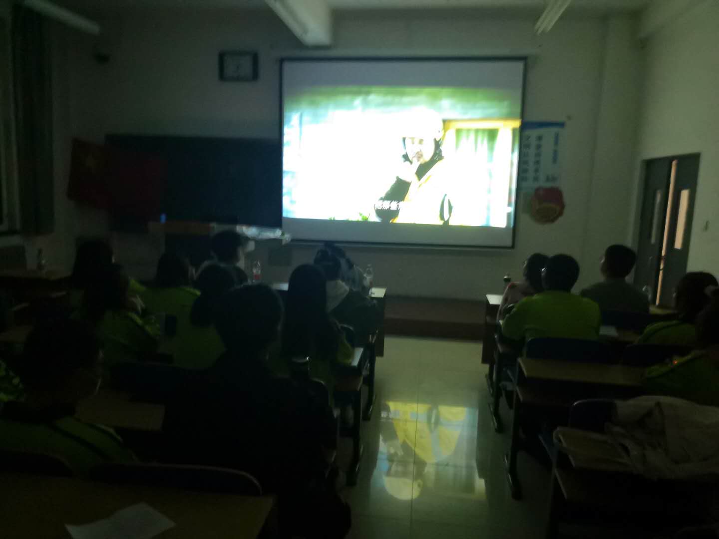 活动在同学们齐声合唱《光荣啊,中国共青团》中拉开帷幕,此次活动以播放抗疫剧《在一起》的形式进行,影片讲述一个普通民众在疫情期间对人民和国家所做出的贡献,主人公郝勇只是一个普普通通武汉民众却在疫情期间坚守岗位,为武汉人民送去生活用品并且坚持接送医护人员,他无私奉献的精神让同学们感慨良多。
