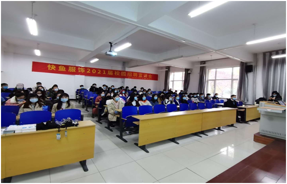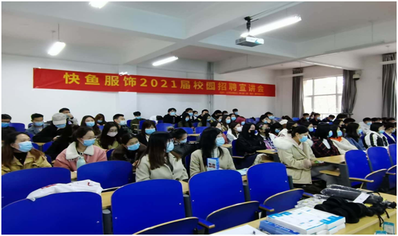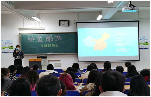 快鱼服饰有限公司于2020年10月14日(周三)下午在必赢nn699net教B103面向必赢nn699net服装设计与工程、服装与服饰设计、纺织工程三个专业的应届毕业生开展了企业专场招聘宣讲会。