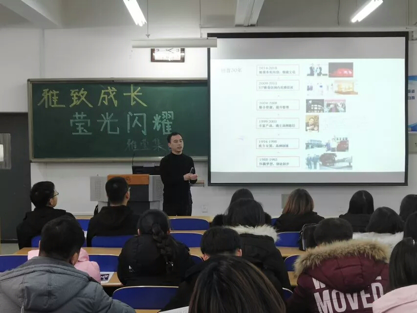 宣讲前,企业负责人通过视频向同学们简单介绍了雅莹集团。在宣讲正式开始后,宣讲人对公司的运营以及企业文化进行了详细介绍,雅莹集团成立于1988年,至今已成立三十周年。迄今为止,雅莹已在北京、上海、广州、深圳及澳门等210多个城市开设优质门店,并拥有出色的线上销售。随后,公司负责人询问了同学们的就业意向,并就公司的人才需求以及岗位要求进行了介绍。最后,公司负责人解答了同学们关于公司薪酬福利待遇等方面的问题。