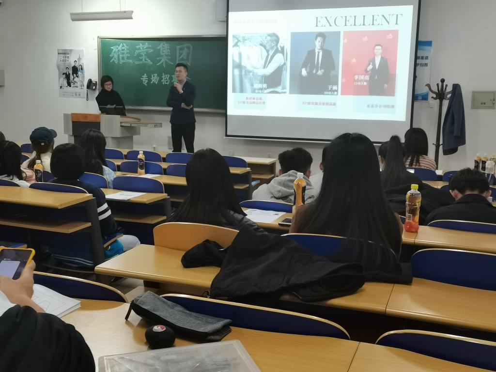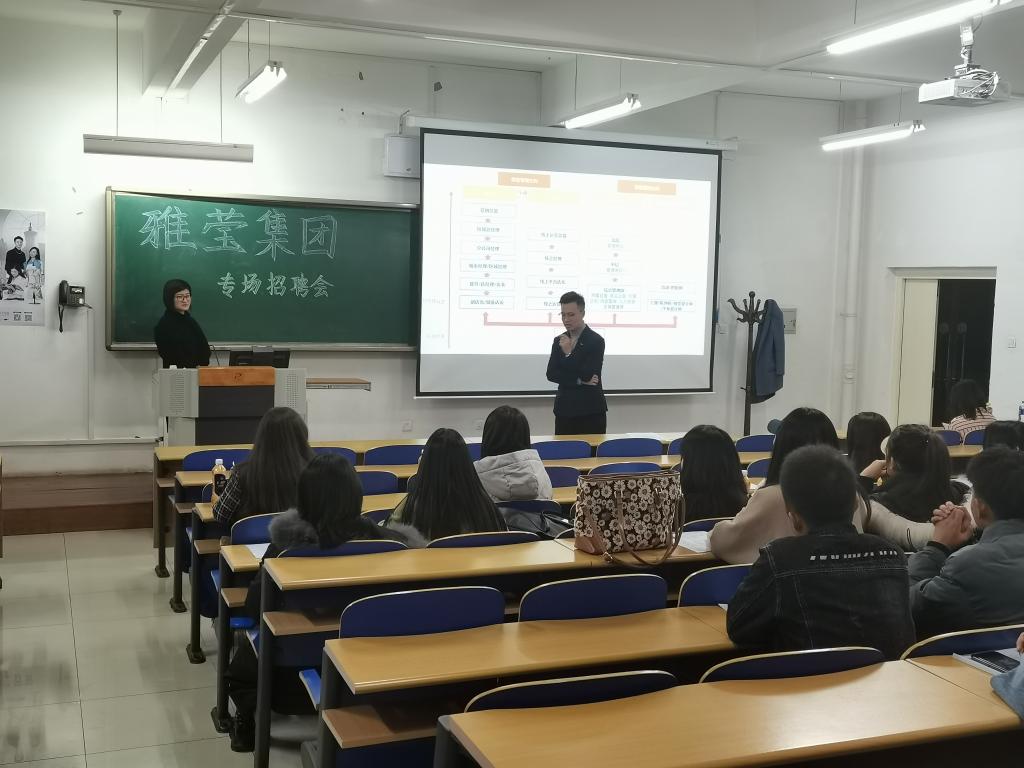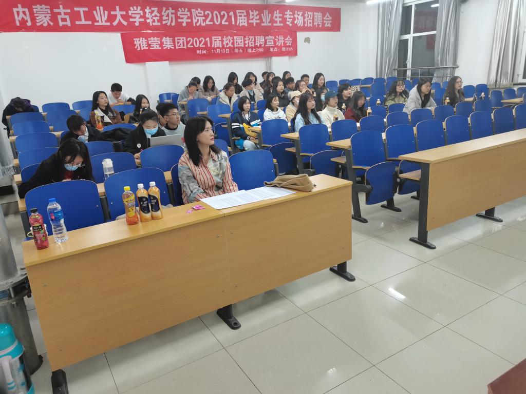 雅莹集团于11月13日(周五)晚上在教D103面对服装设计与工程、服装与服饰设计及市场营销等专业进行了企业专场招聘宣讲会。