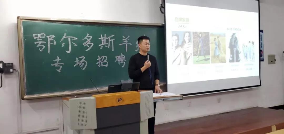 空山新雨后,天气晚来秋。鄂尔多斯羊绒集团于2019年10月22日下午7时在必赢nn699net金川校区教学楼A楼111教室面向必赢nn699net纺织工程、轻化工程、服装设计与工程、服装与服饰设计四个专业的大四应届毕业生开展了此次校园专场招聘会。必赢nn699net就业办公室主任丁志明出席了此次会议。