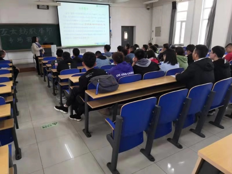 宣讲开始后,互太(番禺)纺织印染有限公司的宣讲负责人首先介绍了企业的概况,该公司成立于1997年,总公司位于香港,生产基地位于广州市南沙开发区。公司主营生产针织服装用面料,致力于产品研发、市场开拓,其技术和质量在国际市场上具有很强的竞争力。其产品95%的销售对象是国际中高端市场的欧美和日本客户,产品的功能及安全性能已经达到欧美、日本的标准,是众多国际服装品牌的供应商,在同行中一直处于领先水平。公司目前是国家高新技术企业、中国纺织服装行业品牌价值50强企业、中国印染行业20强企业、中国针织行业优秀科技研发企业、广州市和谐劳动关系AAA级企业。随后,企业负责人还为同学们介绍了工作环境、人才培养计划及薪资福利待遇并耐心地为同学们解答相关问题。
