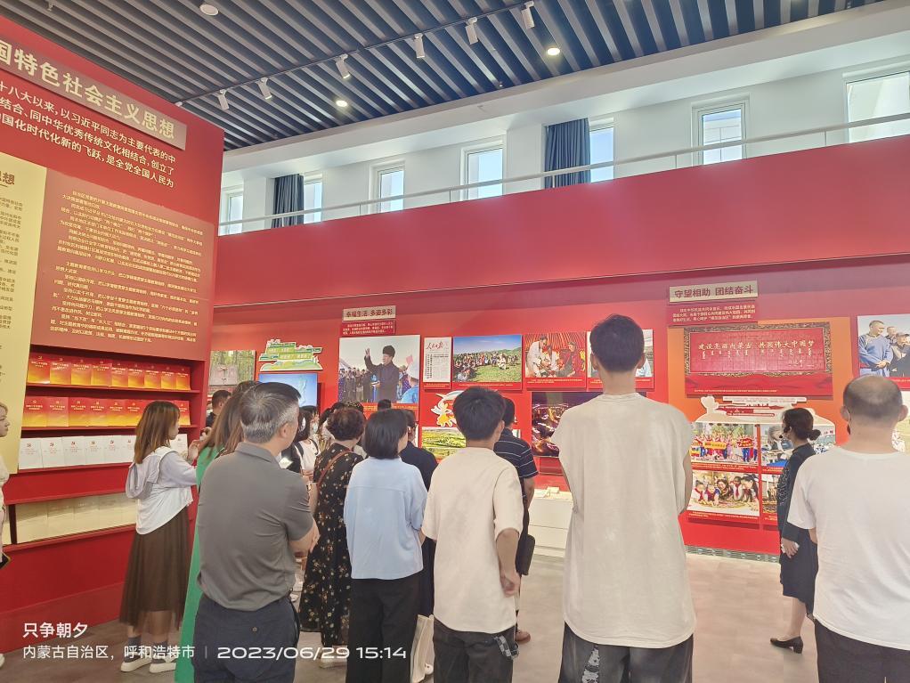全体师生党员参观了“新时代伟大成就”“高举伟大旗帜”“书写新的篇章”3个主题单元,深刻感受新时代10年党和国家事业的伟大成就、伟大变革,为党的领导下新时代十年内蒙古自治区团结奋斗取得的成就感到自豪。