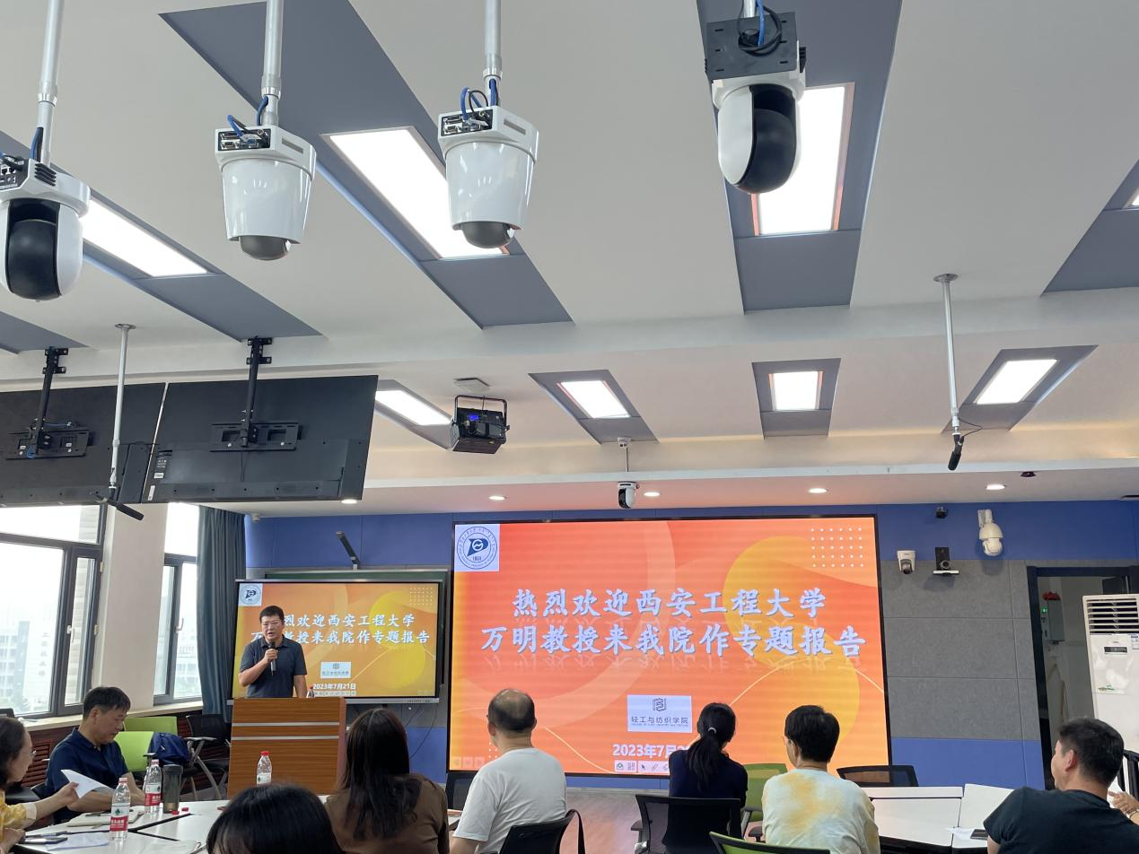 为推动学院课程思政教学研究与改革,提升学院教师课程思政教学能力,7月21日上午,必赢nn699net在学校“唯实课栈”举办题为《挖掘思政元素 优化教学设计 努力建设一流课程思政示范课》的课程思政建设报告会。报告会邀请教育部纺织类教学指导委员会委员、教育部工程教育专业认证专家、教育部本科教学审核评估专家——西安工程大学原教务处处长万明教授进行主讲。学院全体教师参加报告会,学院副院长徐鹏主持报告会。