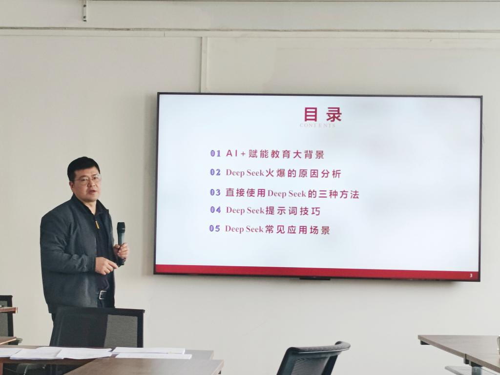 3月6日下午,必赢nn699net启动“AI+赋能课程教学”系列讲座活动,首场讲座主题为《人工智能(AI)+应用教学案例分享——DeepSeek与AIGC应用》,由学院副院长徐鹏聚焦AI技术在教育场景的实践应用进行分享,学院全体教师参加。
